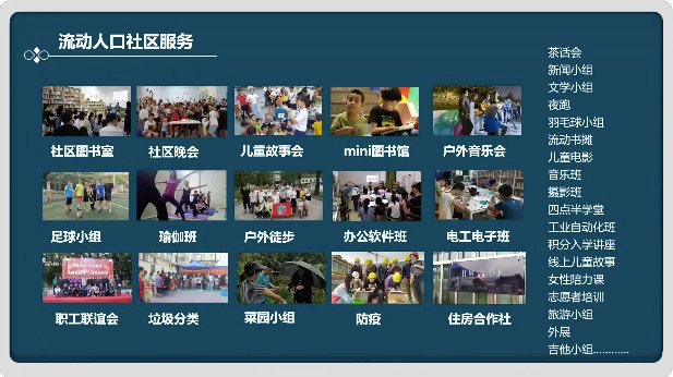 图:比邻开展的流动人口社区服务活动多种多样